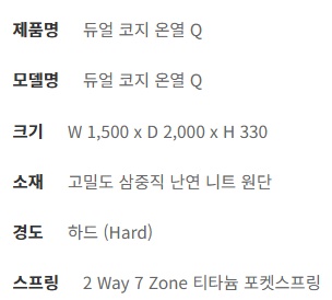 | 제품규격 | LK (라지 킹 사이즈) W 1,500 x D 2,000 x H 330 mm |